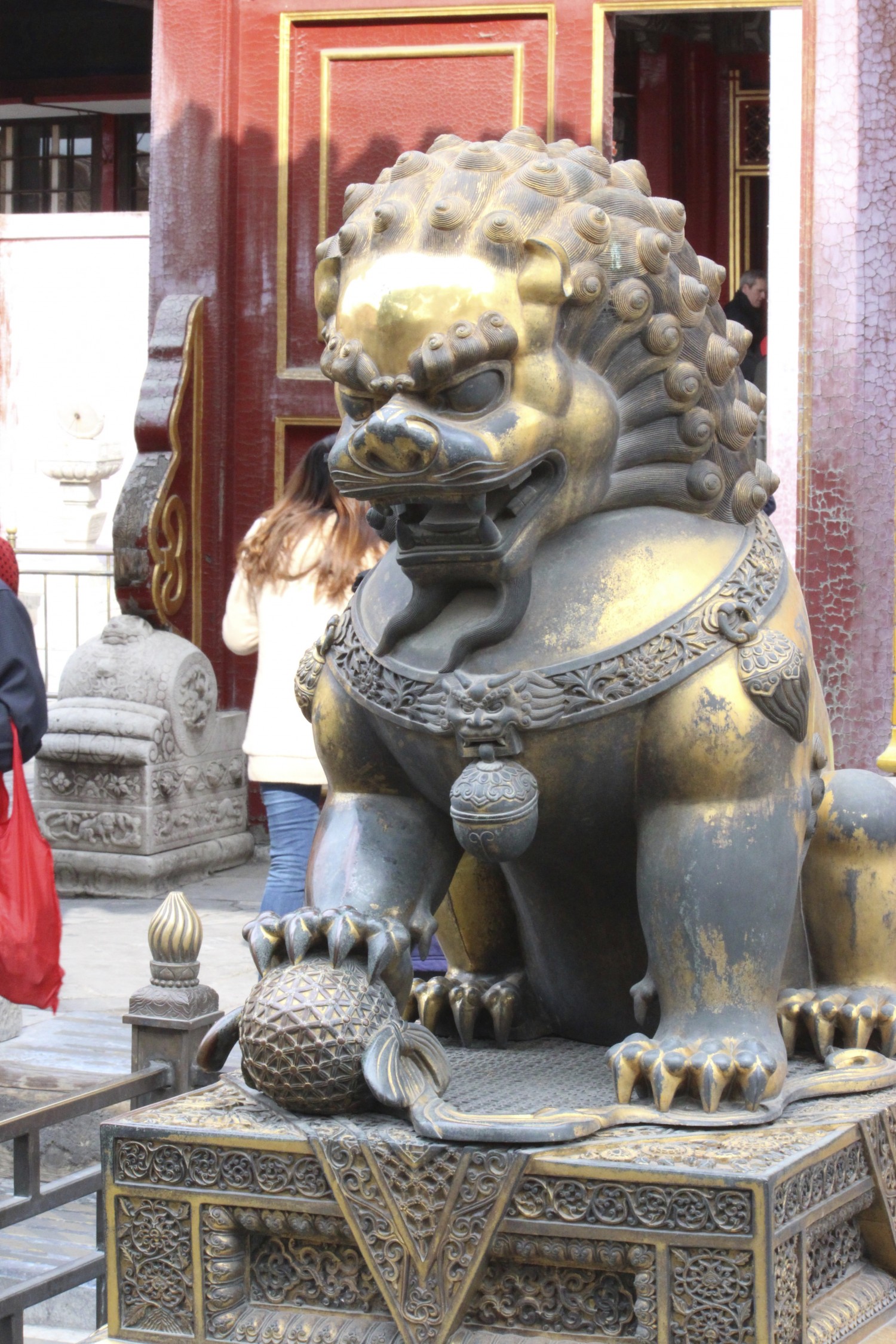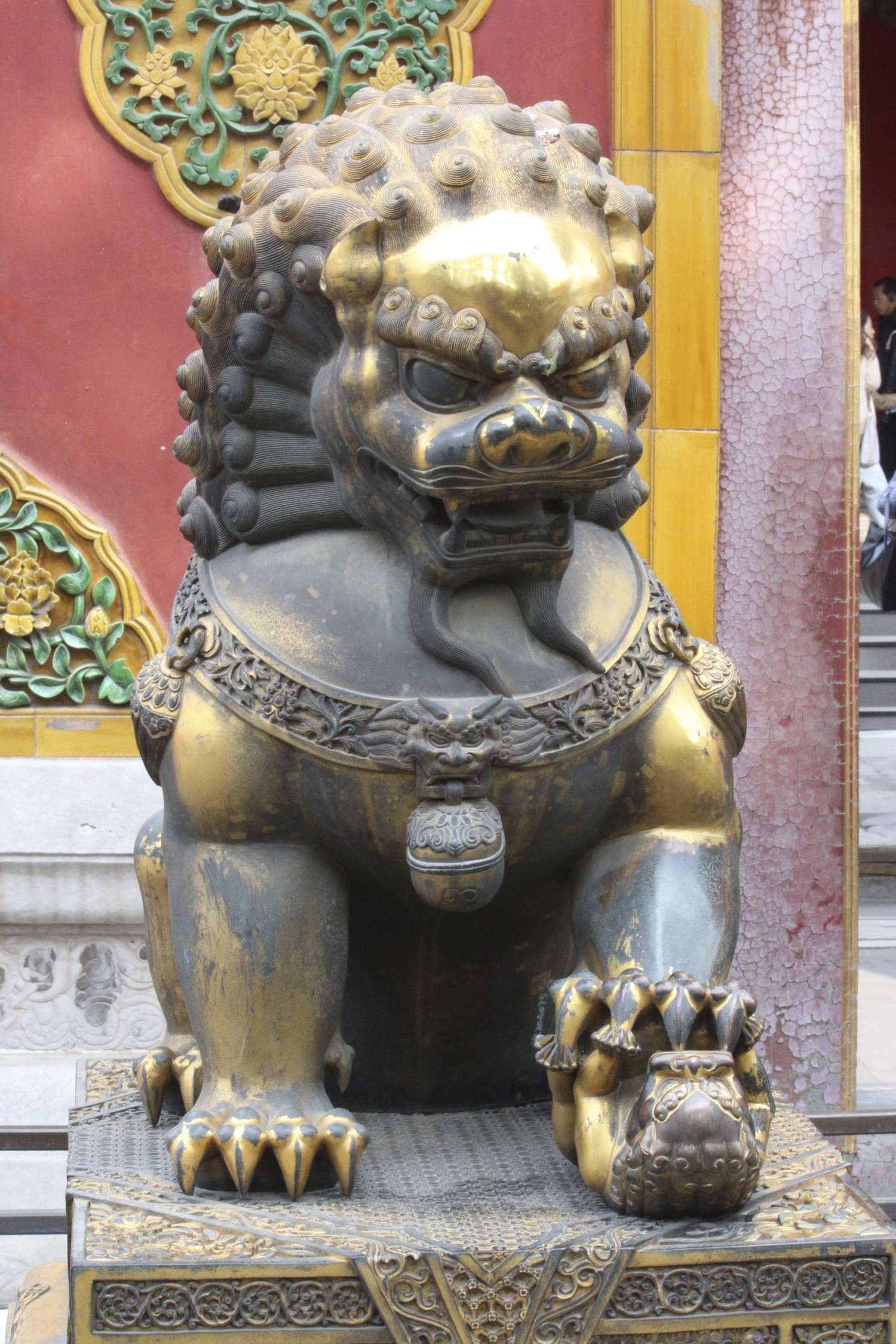 The entrance to the living quarter and almost all buildings had two brass lions out front. Crystal explained to us that the female lion is always on the right side of the door as you exit. You can tell it’s a female as under her left paw is a young tiger, laying upside down in a playful position. The male lion is always on the left as you walk out of the door. The male has a ball under his paw symbolizing supremacy over the world.