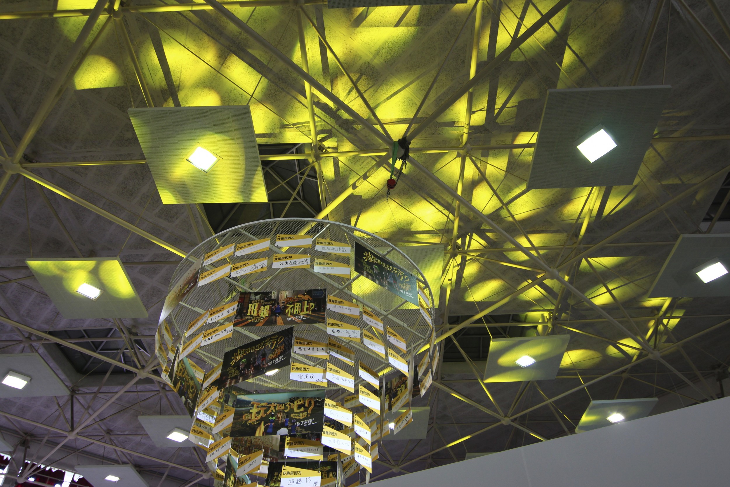 Chandelier at the NIKE Expo created with posters from consumers sharing reasons why they run.